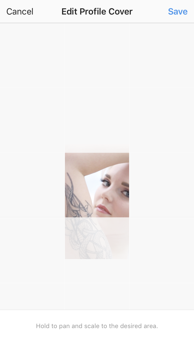 Use the pinch of your fingers on your phone to select your desired zoom and position of the cover photo. Click Save.
